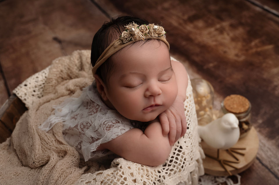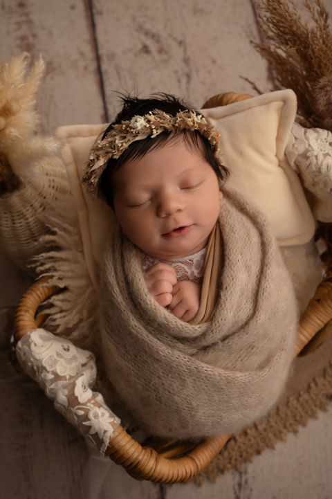La séance comprend le prêt d'une tenue et accessoires pour bébé (doudou, head band, etc.), ainsi que l’utilisation de contenants et la préparation de décors pour votre séance.